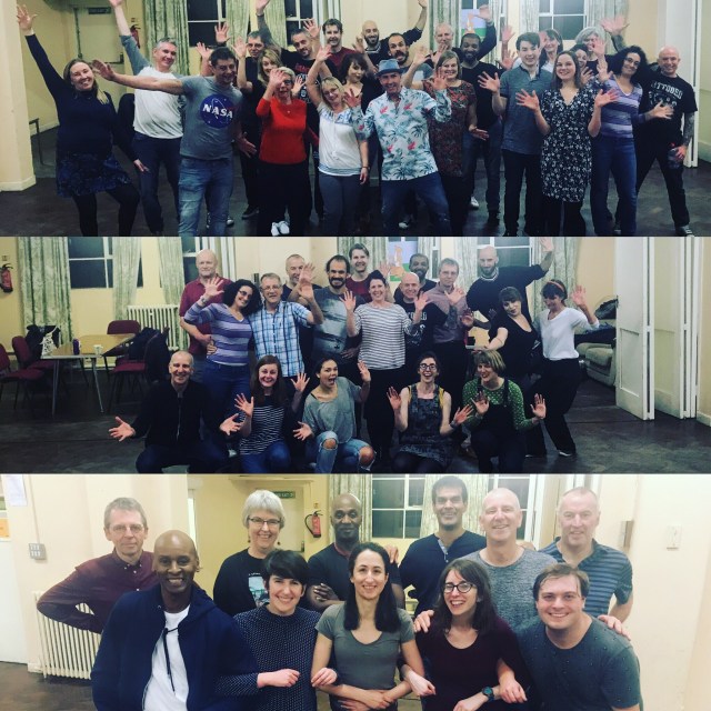In the above photo we have Lindy Hop Fundamentals (beginners and friends) at the top, Improvers (and Intermediates) in the middle and Solo Jazzsters at the bottom.