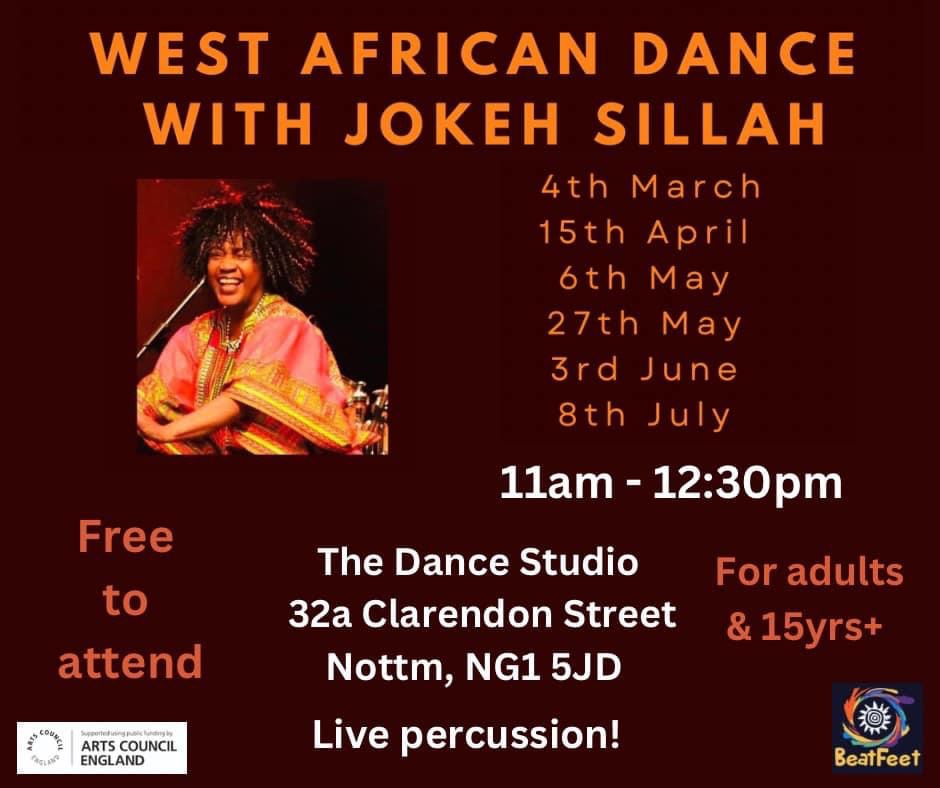 I’ve discovered a fabulous opportunity right here in Nottingham to experience this culture, it’s rhythms, and movements in this series of free (Arts Council England funded) workshops from Jokeh Sillah and with live percussion too!