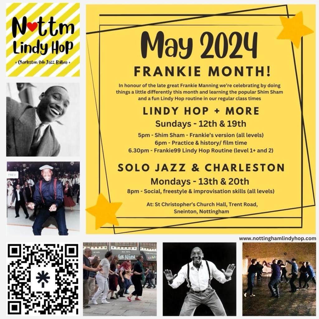 ⭐️May24! Lots of fun and something a little different at our two weeks of classes squeezed between the bank holidays as we celebrate Frankie (Manning) Month leading up to World Lindy Hop Day on 26 May.