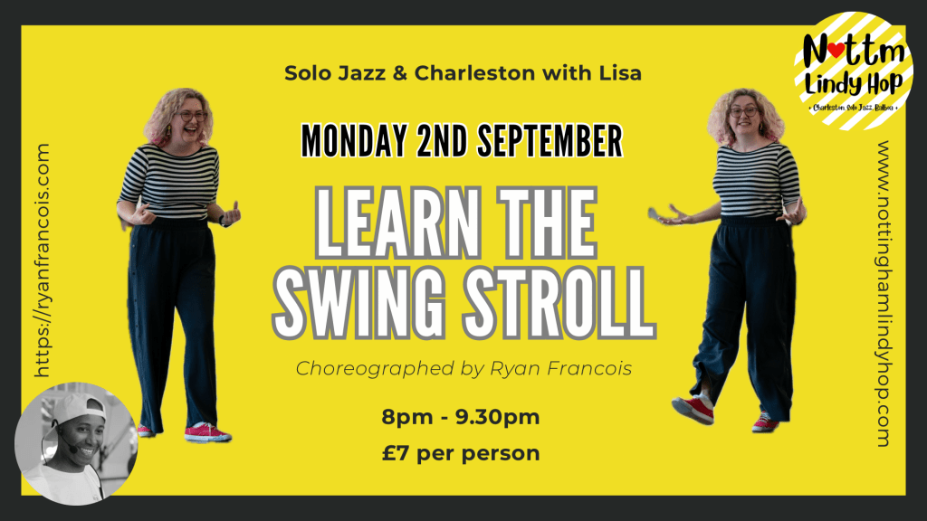In our first class on 2 September we’ll be learning the Swing Stroll as choreographed by Ryan Francois and dances to My Baby Just Cares For Me by Nina Simone.