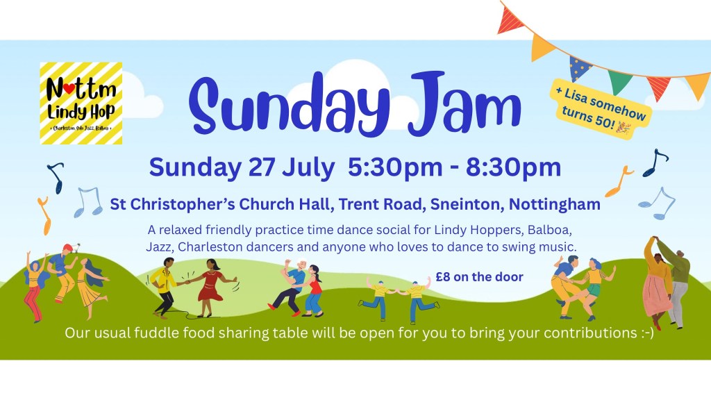 It’s also open to all Lindy Hop, Charleston, Balboa, Jazz dancers who want a lovely big hall to dance in at their own pace and some fabulous dancing people to hang out with.